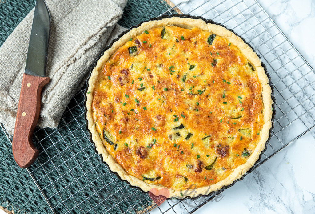 Courgette en chorizo zijn dikke smaakvrienden. Deze courgettequiche is dan ook echt een aanrader. Heerlijk als hoofdgerecht met een salade erbij, of neem hem de volgende dag mee naar je werk als lunch. Koud smaakt hij prima, maar je kunt hem ook weer even opwarmen in de oven. Het quichedeeg maak ik graag zelf (heel makkelijk en zo gebeurd), maar heb je daar geen zin dan kun je natuurlijk ook kant-en-klaar quichedeeg, hartig taartdeeg of bladerdeeg gebruiken. Wat jezelf maar lekker vindt!