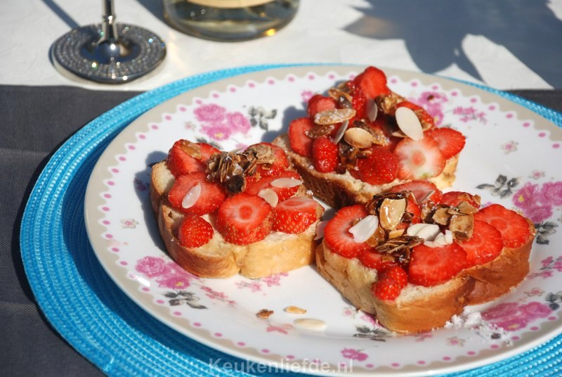 4. Suikerbrood met aardbeien en amandelstrooisel