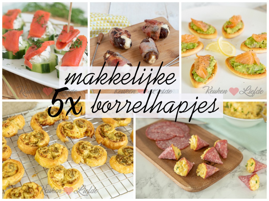 Van makkelijke borrelhapjes kun je nooit genoeg recepten hebben. Vind ik dan hoor! Daarom heb ik er vijf voor je op een rij gezet. Heerlijk bij de borrel, of om mee rond te gaan op een feestje of verjaardag.
