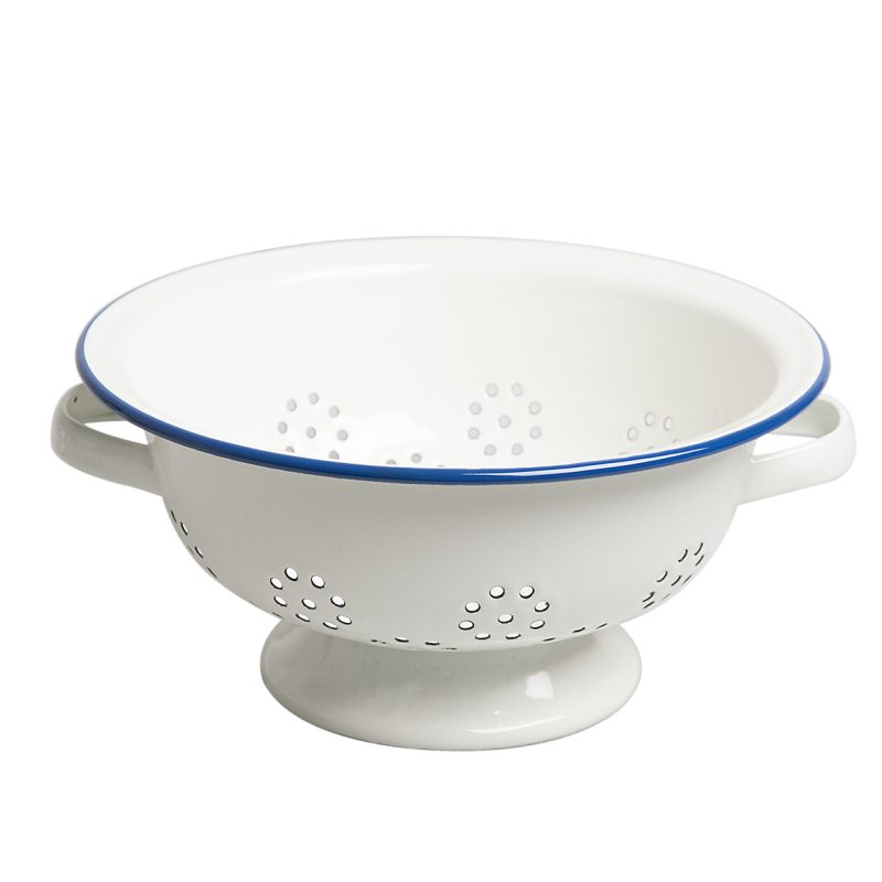 Ik denk altijd wel wat praktisch (moet bij mij een “voet” hebben anders blijft in zijn eigen vocht staan mits je geen extra kom of pan vuil willen maken) en ik vind de wit met blauwe rand het mooist, 2de plek is het franse vergiet. Het eerste vergiet is ook praktisch maar in een klassieke keuken niet echt passend.