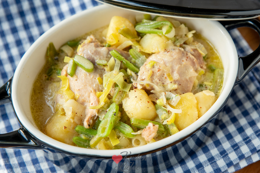 7. Deze snelle kipstoof met snijbonen en krieltjes in romige mosterdsaus is een echte familiefavoriet! Iedereen is er dol op!
