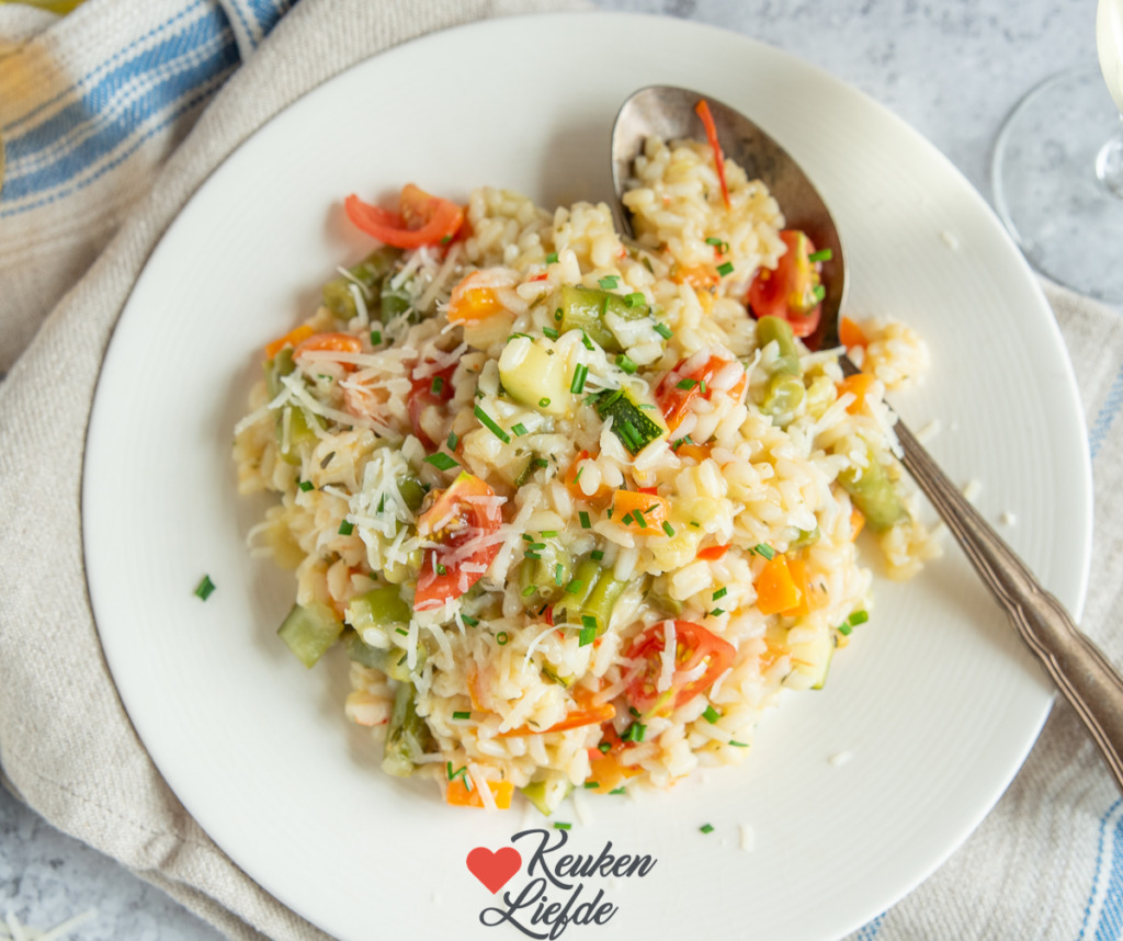 Ik ben dol op makkelijke eenpansgerechten zoals risotto. Deze Italiaanse risotto alle verdure is goed gevuld met wortel, courgette, sperzieboontjes en tomaatjes.