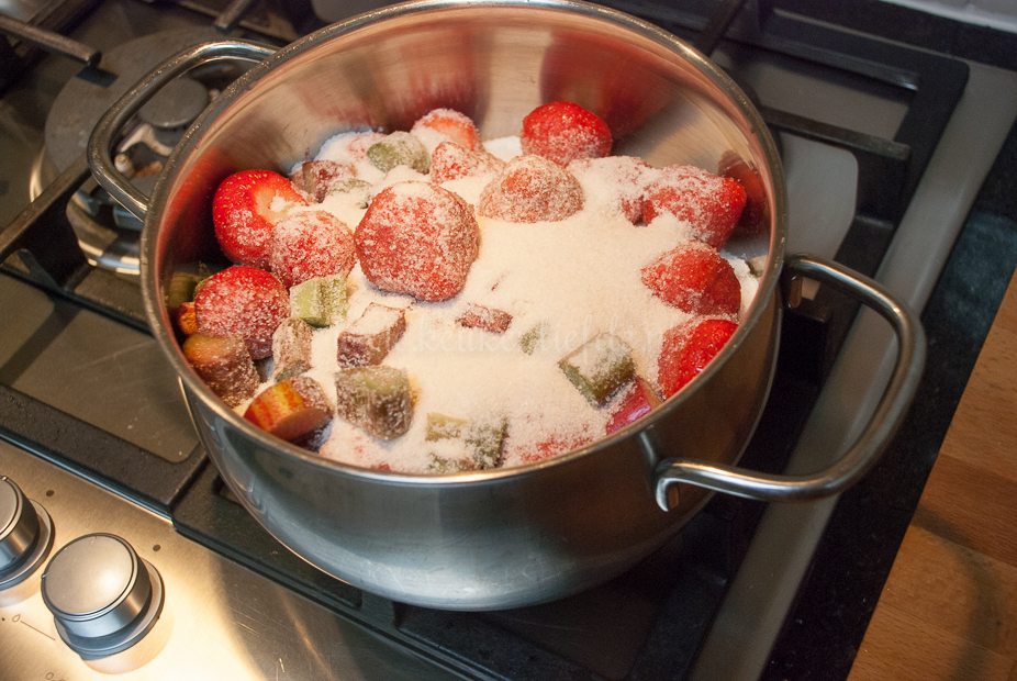 Voeg voor een fris accent de rasp van 1 citroen toe en kook mee met de aardbeien en rabarber.