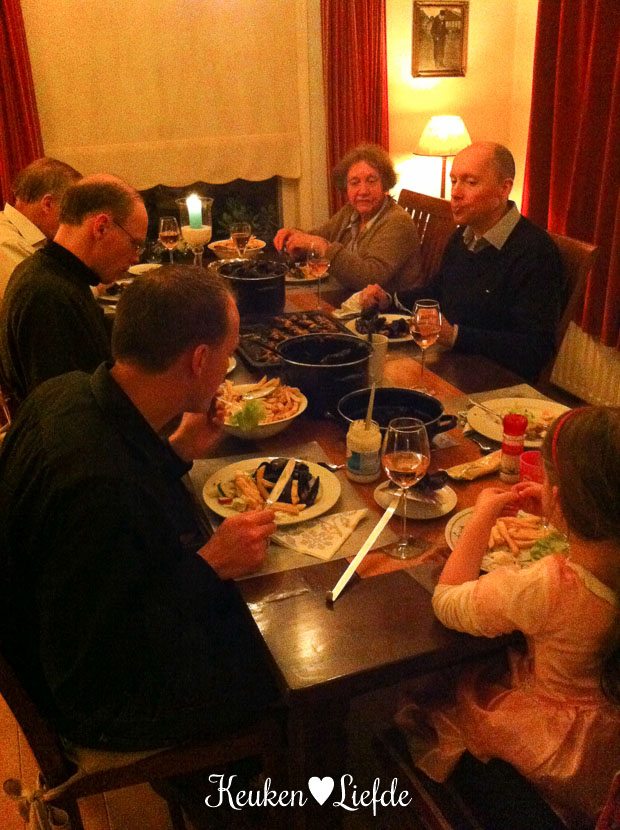Als aperitiefhapje zet mijn moeder haar wereldberoemde vishapjes op tafel (recept deel ik a.s. zondag met je) en wordt er een flesje bubbels opengetrokken. Het begin van een hele gezellige avond …