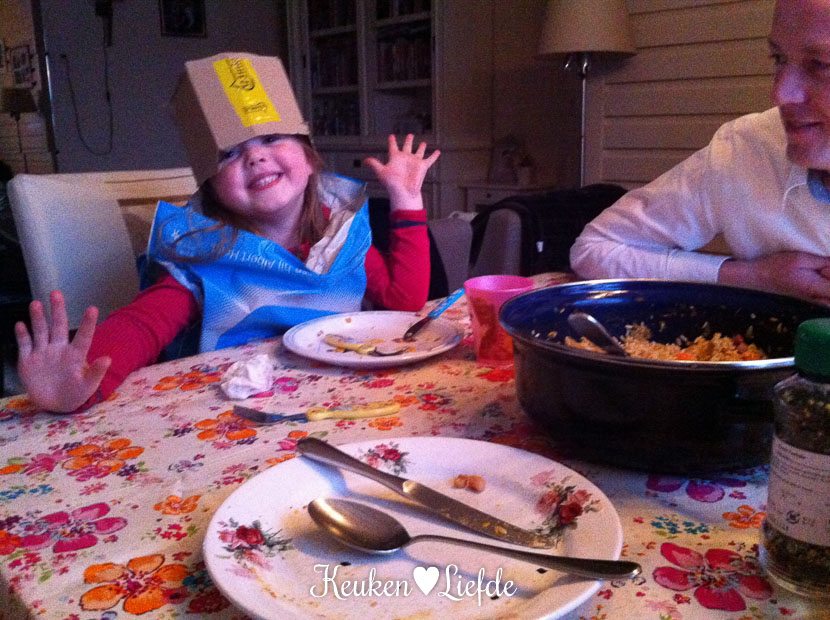 Johan wil graag nasi eten. Geen probleem, want dit lievelingskostje van papa staat supersnel op tafel. Dochterlief vindt het prima, zolang ze er maar kroepoek bij krijgt.