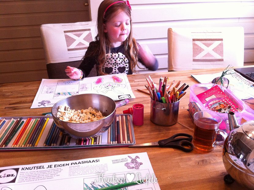 Ik wilde het recept delen – de vlaflip is namelijk superlekker! –, maar dat is dus nog even afhankelijk of ik een goede foto kan maken … Ik houd het voor gezien en ga knutselen met El. Het is zondag dus een bakje popcorn hoort erbij.