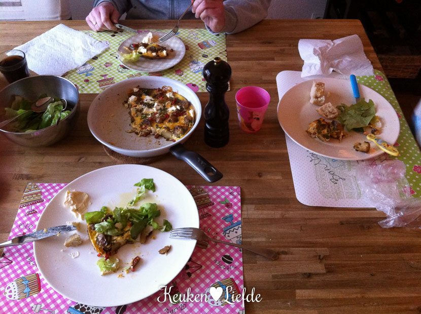 ’s Avonds eten we Killer van een aardappeltortilla met chorizo, geroosterde paprika en feta. Ik had hem maandag al gemaakt en hoefde hem alleen even opnieuw op te warmen. Ideaal als je weinig tijd hebt!
