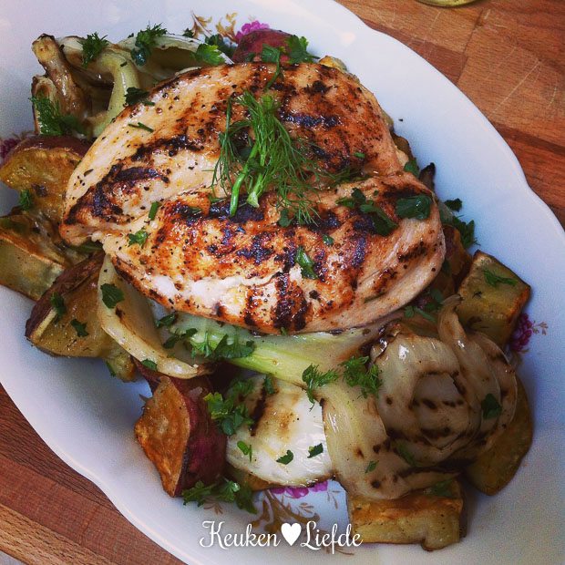 Maandag maakte ik een zoete aardappel-venkelsalade met gegrilde cajunkip. Wauw, wat lekker! Recept komt binnenkort online.