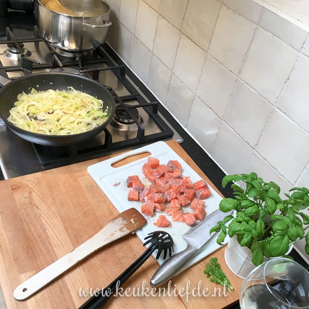 Een normale werkdag. Omdat ik voor de chicken paillard maar een halve venkel nodig had, gebruik ik de andere helft voor een lekker pastagerecht. Ik maak spaghetti met venkel- en zalmroomsaus. Superlekker! Het recept ga ik snel met je delen.