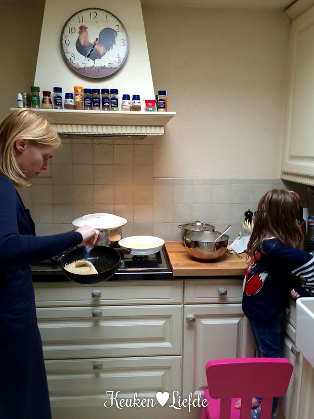 ’s Avonds bak ik wel twintig pannenkoeken! Gewoon, omdat we er zin in hebben. 🙂 We eten ze overigens niet allemaal op hoor.