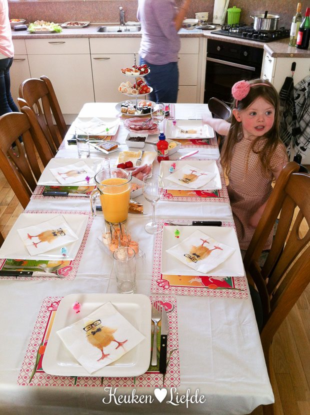 ’s Middags na de zwemles van El gaan we even bij mijn ouders langs. M’n moeder maakt altijd de allermooiste bloemstukken. Nu in paasstijl. Zo schattig, die kuikentjes heb ik vroeger gemaakt toen ik klein was.
