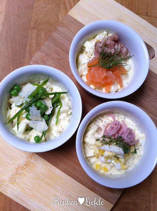 Als Ella-Marie op bed ligt ga ik aan de slag met drie luxe aspergesalades voor op toast. Aankomende donderdag wordt het aspergeseizoen officieel geopend en daar hoort natuurlijk een lekker recept bij. Omdat we nog een klein gaatje over hadden, serveer ik de salades op casinobrood als hapje. Met een filmpje en glas wijn erbij, genieten!