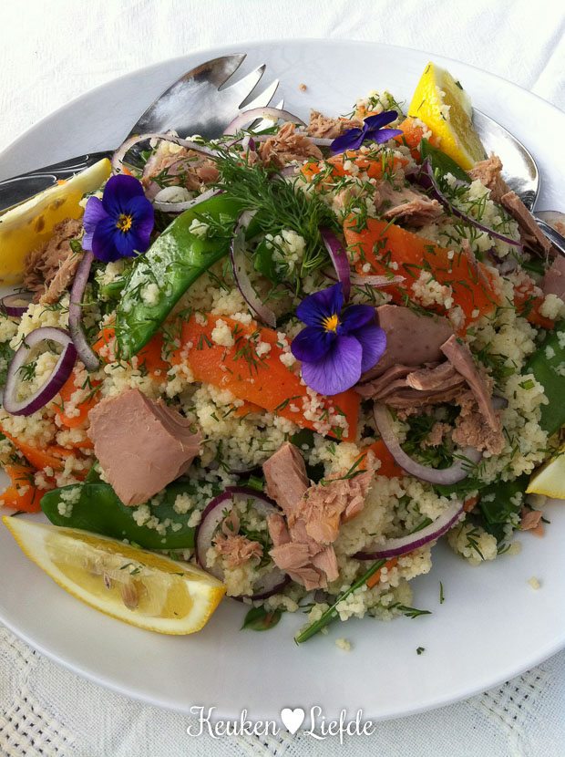 Na het broodje bal, maak ik ook direct een couscoussalade met tonijn die binnen 15 minuten klaar is. Een dikke aanrader! Het recept komt snel online.