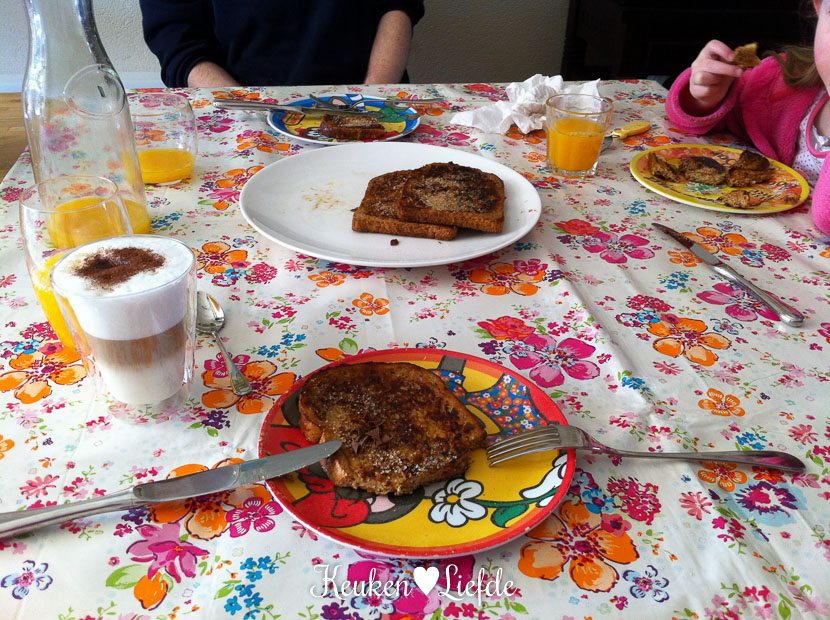 We slapen lekker uit en ontbijten met wentelteefjes, verse jus d’orange en een latte macchiato. Heerlijk, zo’n zondagochtend!