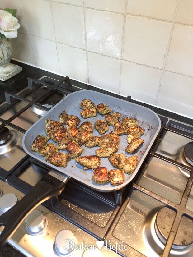 Ik begin ’s ochtends direct met het marineren van de kip voor het avondeten. Op het menu staat het lievelingsgerecht van Johano en mij: Oosterse wraps met gemarineerde en gegrilde kip, flinterdun gesneden witte- en rodekool, lente-ui en zoete chilisaus. Het geheim van dit gerecht is deze marinade. Die is zó lekker!