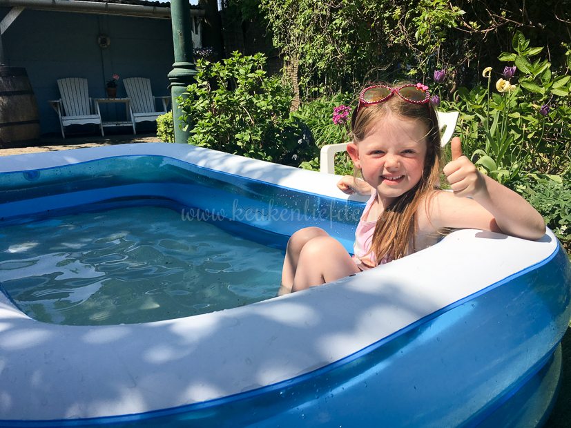 Daarna lopen we de stad in om halverwege toch weer huiswaarts te keren. Wat een drukte! Thuis aangekomen zetten we het zwembadje op voor Ella-Marie en genieten van (weer!) een heerlijke middag in de tuin.