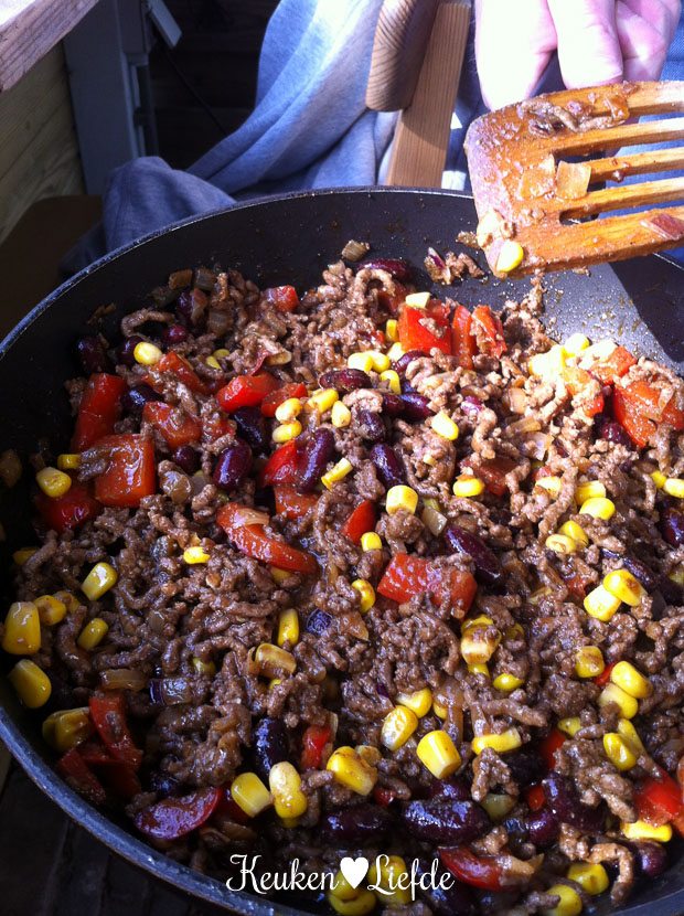 El heeft nog steeds vakantie en Johan is vandaag en morgen vrij. Heerlijk, want hierdoor houdt het weekendgevoel nog even aan. Natuurlijk wordt er ook gewerkt, maar ’s middags gaat de computer aan de kant. Het is heerlijk weer en dus kook ik buiten. Ik maak Mexicaanse taco’s met pittige salsa. Echt zo lekker!
