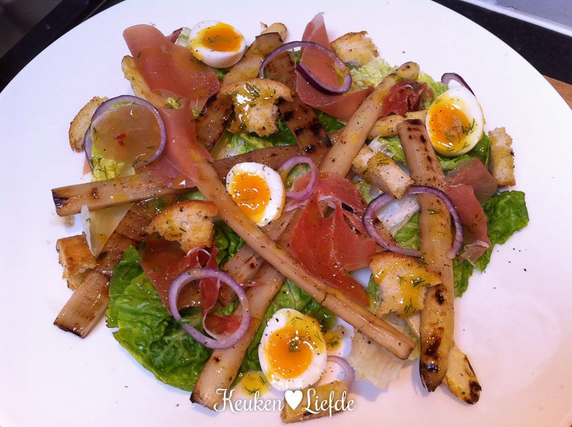 ’s Avonds maak ik een aspergesalade die echt waanzinnig lekker is! Recept volgt binnenkort.