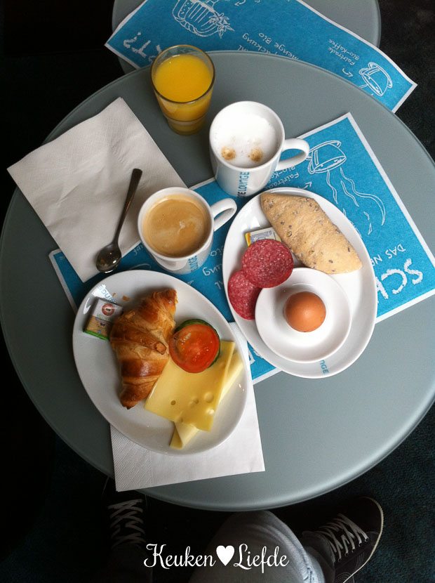 - Het ontbijt bij Motel One.