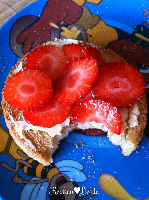 El en ik eten tussen de middag een beschuitje met verse aardbeien en daarna kruip ik nog even achter de computer. Morgen vertrek ik samen met mijn moeder naar Düsseldorf en dus moet ik weer in het voren werken.