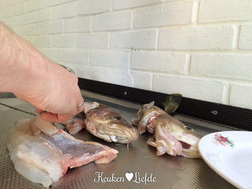 Terwijl ik nog wat werk, fileert Johan de kabeljauw. El maakt de foto’s. Wat een teamwork!