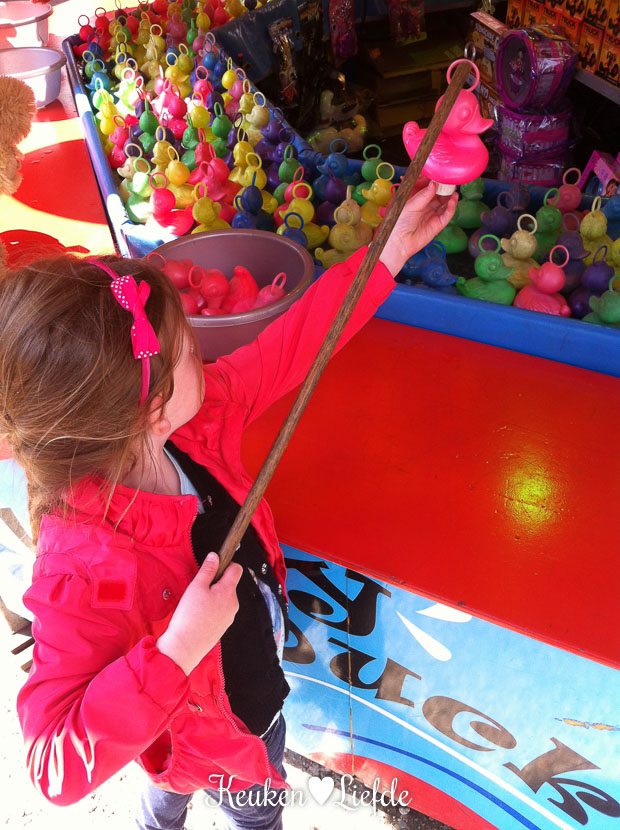 De kermis is weer begonnen in Tiel en omdat Ella-Marie hiervoor van oma een paar centjes had gekregen, fietsen we er na school even langs. El is dol op eendjes vissen en slaat een zeemeermin aan de haak.