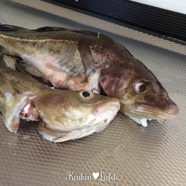 Johan is pas ’s avonds laat weer thuis. De vangst van een dag vol ontberingen en dikke pieren aan de haak slaan zijn welgeteld twee kabeljauws. Een stuk minder dan twee jaar geleden, maar we zijn er blij mee. Kabeljauw is zo ontzettend lekker! Heb je deze zelfgemaakte kibbeling al eens geprobeerd? Doen!