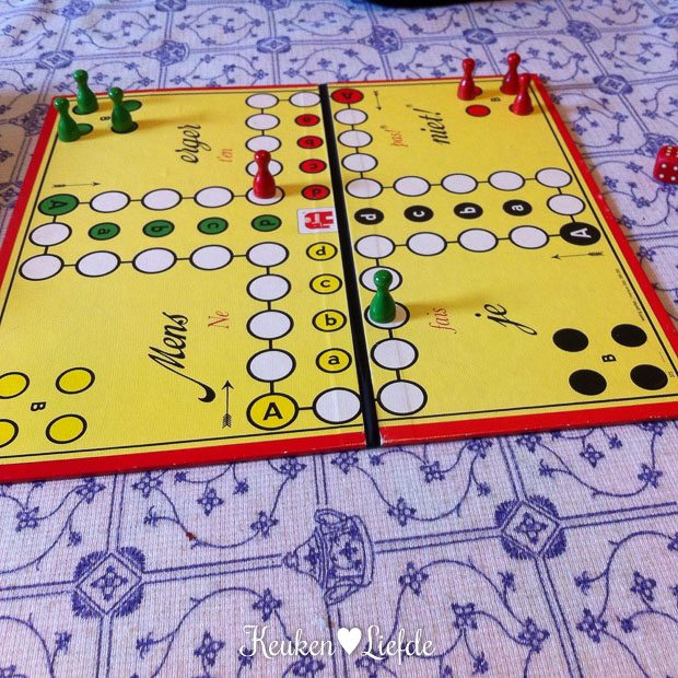 Als ik klaar ben met werken, stappen we in de auto en rijden naar mijn ouders. Onderweg nemen we een paar gebakjes mee, want dat mag op zaterdag. We spelen een potje Mens Erger Je Niet en een potje Ganzenbord. Daarna gaan oma, opa en Ella-Marie naar buiten, terwijl ik een berglading pannenkoeken bak.