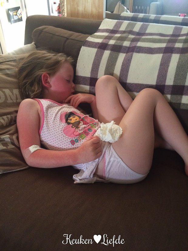 Ze eet bijna niets, maar drinken gaat gelukkig wel. Niet leuk als je kind zich zo ellendig voelt.