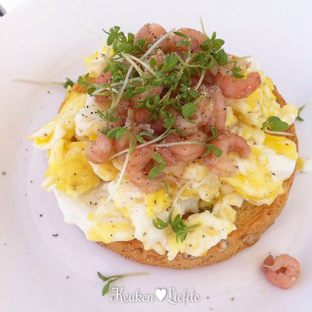 Ik krijg foodpost thuisbezorgd van Mediaxplain (mediaburea) ter promotie van het nieuwe speltbeschuit van Bolletje. Omdat het tussen de middag is, maak ik direct een lekkere lunch met de inhoud van het pakket: een speltbeschuitje met roerei, Hollandse garnalen en tuinkers. Heerlijk! Je kunt het eigenlijk geen recept noemen (zo simpel is het!), maar toch deel ik hem binnenkort met je. Hij is lekker!