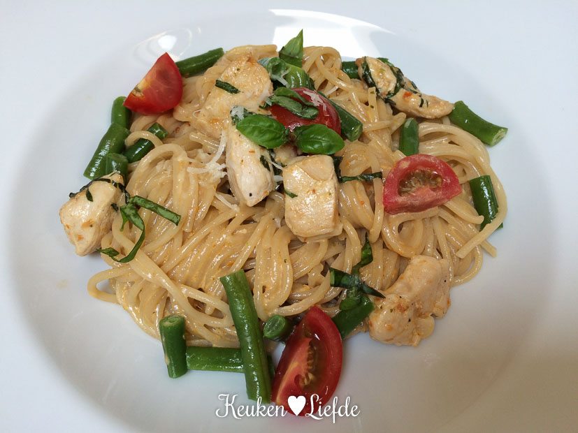 Hoewel ik weinig zin heb om te koken, dwing ik mezelf er toch toe. Ik had vanmorgen kipfilet uit de vriezer gehaald en het is zonde om die weg te moeten gooien. Ik kook spaghetti in rode-pestosaus met kip en sperziebonen. De stilte aan tafel tijdens het eten en de nog net niet schoongelikte borden zijn voor mij het teken dat dit een blijvertje is. Recept volgt binnenkort.
