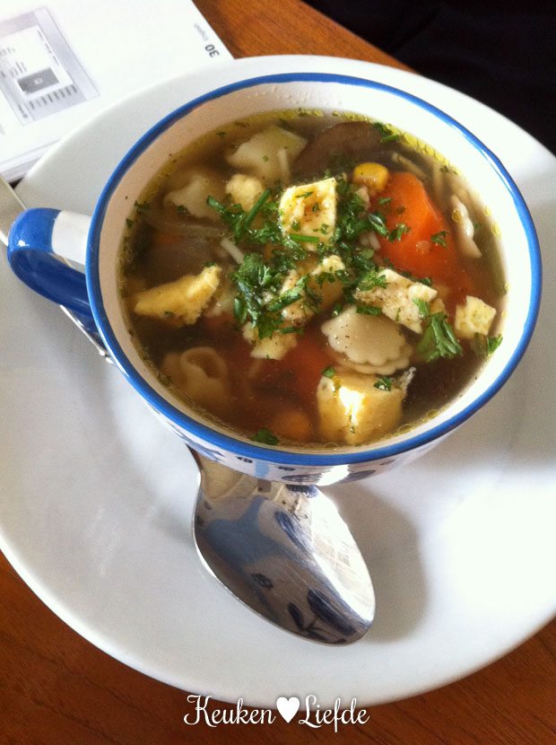 ’s Middags rijden we nog even naar mijn ouders om wat spullen op te halen. In de keuken staat een grote pan met soep te pruttelen, waar ik natuurlijk een foto van moet maken. Mijn moeder zegt altijd dat ze maar wat doet, maar maakt ondertussen wel de lekkerste soep ter wereld! Wij slaan dit keer over (we gaan zo thuis eten), maar ik kan het natuurlijk niet laten om er een foto van te maken. Lekker hoor!