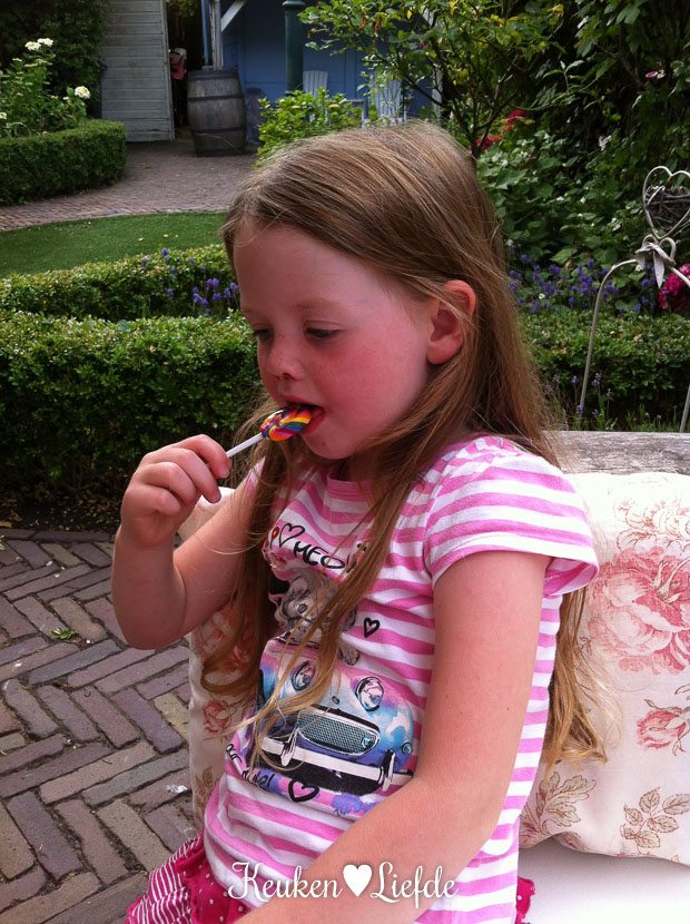 Ella-Marie likt, slurpt en sabbelt aan de felgekleurde lolly, maar haar eindoordeel is onverbiddelijk: ze vindt hem niet lekker. De andere snoepjes testen we een volgende keer … Wordt vervolgd. 🙂