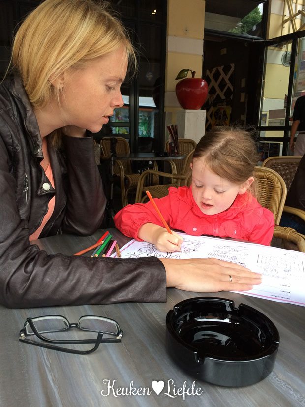 ’s Middags gaan we fietsen. Ella-Marie fietst voor het eerst op haar eigen fietst naar de stad en dat verdient een drankje. En vooruit, een bitterbal.