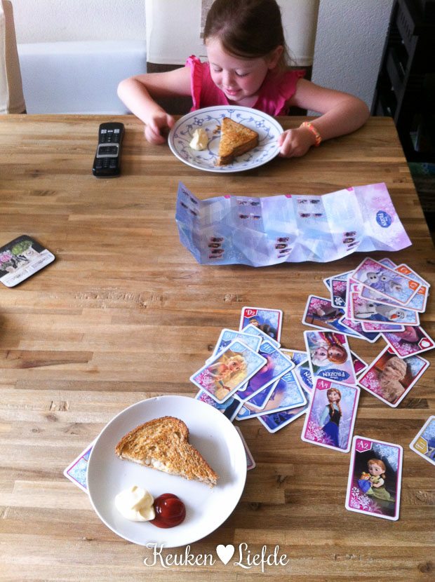 Helaas is het vandaag de hele dag baggerweer, dus moeten we ons binnen vermaken. Tijdens de lunch, spelen we een potje Frozen kwartet. Drie keer raden wie er wint. Daarna hebben we smaak te pakken en spelen we Elsa & Anna in ons eigen Koninkrijk.