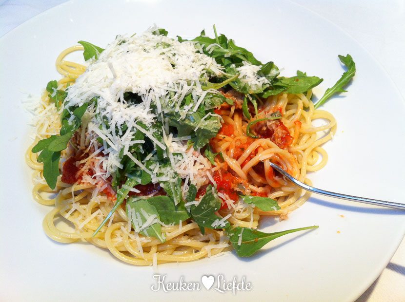 Voor het avondeten laat ik de burgers even voor wat ze zijn en maak spaghetti met pittige tomatensaus en tonijn. We zijn hier allemaal dol op en een bijkomend voordeel is dat het supermakkelijk en snel klaar te maken is. Winnende combi dus. Het recept deel ik binnenkort.