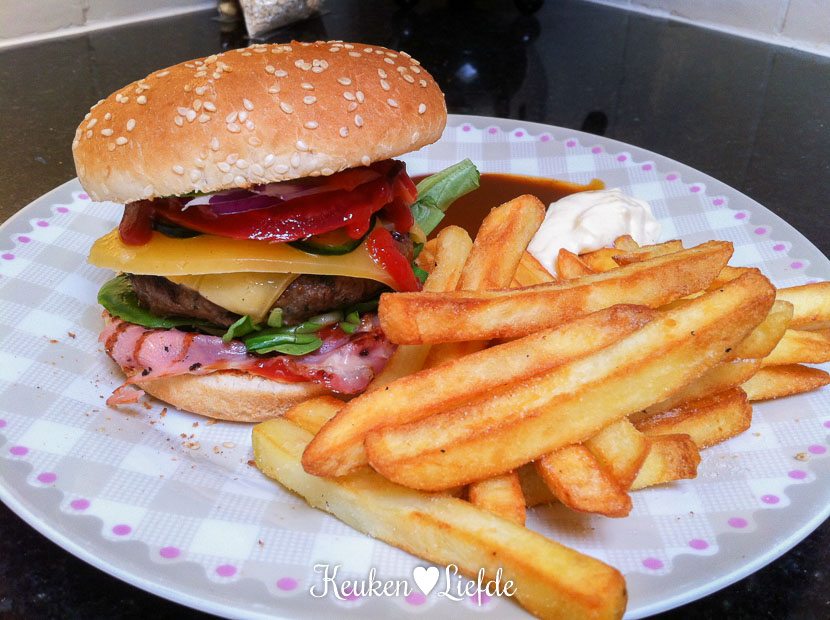 Voor het avondeten maak ik broodje hamburger en serveer er wat frietjes bij uit de Airfryer. O oh, wat een straf.
