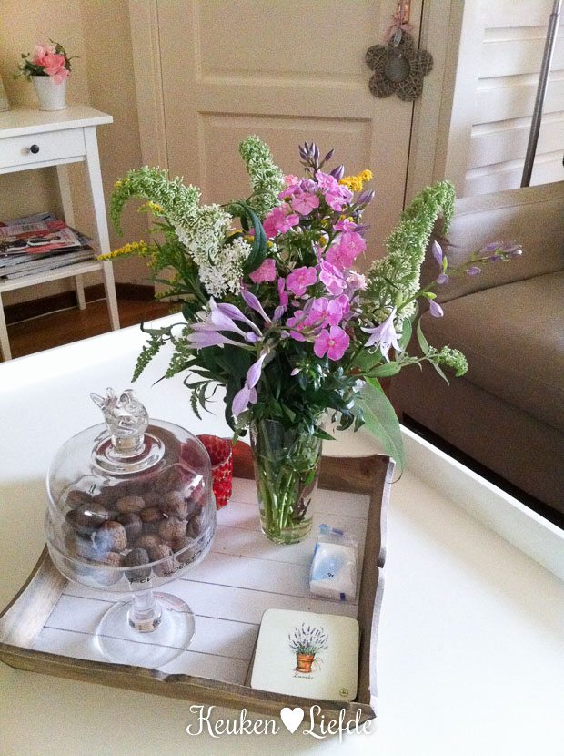 Voordat ik weer naar huis rijd, plukt mijn moeder een bos verse bloemen uit haar tuin en geeft die aan mij mee. Ik zet ze thuis direct in een mooie vaas. Ik word zo blij van verse bloemen; het hele huis fleurt ervan op!