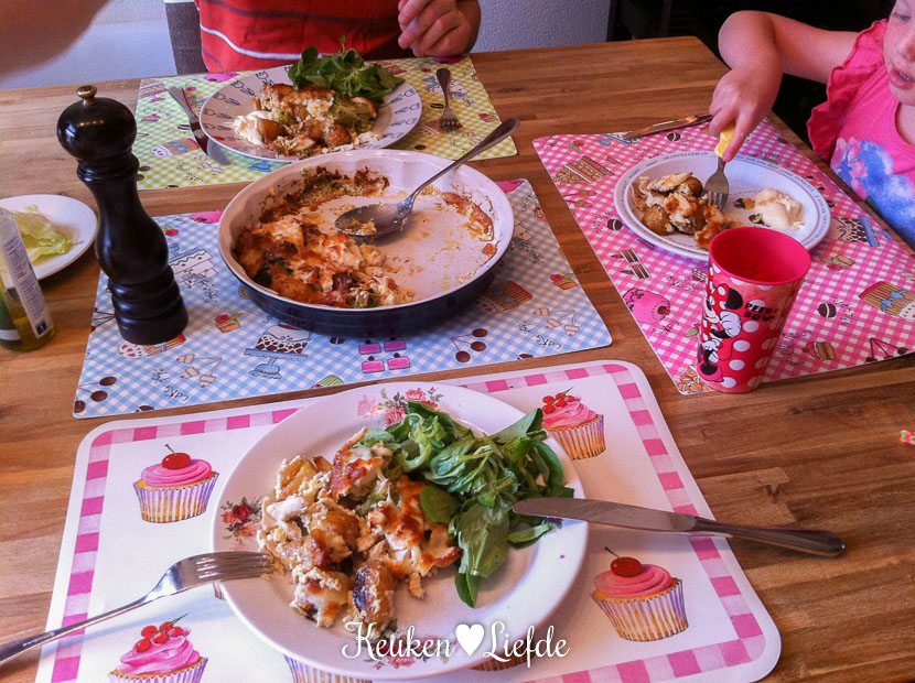 Het avondeten is een makkie vanavond. Ik had nog wat kip, krieltjes en broccoli over en mik het samen met wat losgeklopte eieren bij elkaar in een ovenschaal voor een soort tortilla/frittata. Een lekkere salade erbij en klaar. I love kliekjes!