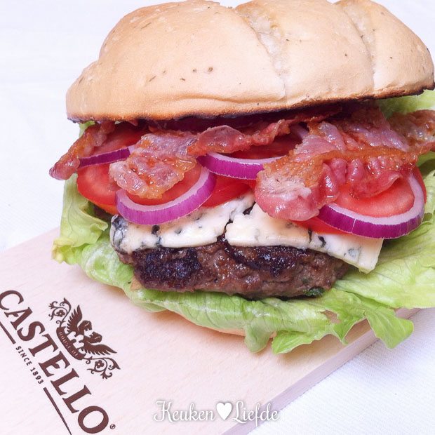 ’s Avonds eten we ons eerste broodje hamburger met Castello Burger Blue. Een superlekker kaasje. Sommige blauwaderkaas kan nogal sterk en overheersend zijn, maar deze is romig en mild met een lekker pitje. Precies goed. De handig geproportioneerde plakken passen perfect op je burger. Het recept komt eraan!