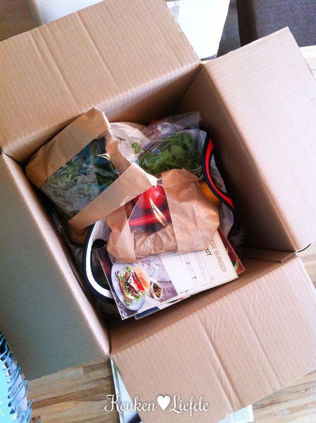 Vlak voordat ik ’s avonds Ella-Marie weer wil ophalen, wordt er een verspakket bezorgd ter promotie van de nieuwe Castello Burger Blue. Het pakket zit boordevol verse ingrediënten om je eigen broodje hamburger te ‘bouwen’. Wauw, wat een supergaaf pakket! Dat betekent de komende dagen dus nog meer burgers eten. Vinden Johan en ik helemaal niet erg! 🙂
