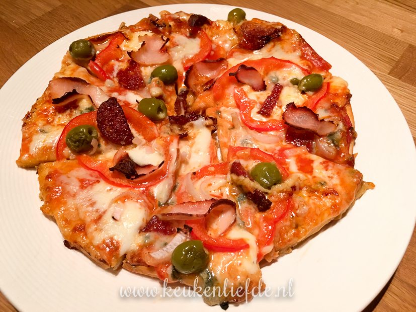 ’s Avonds eet ik alleen. Johan zit voor zijn werk tot en met vrijdag in Groningen en dochterlief eet een hapje mee bij mijn schoonouders. Ik eet weer een diepvriespizza. Wat inspiratieloos hè, maar ik ben nu eenmaal dol op pizza! Ik koop overigens altijd een pak met twee of drie diepvries margheritapizza’s, die ik vervolgens zelf extra beleg. Zo lijkt het toch nog een beetje alsof ik zelf ‘gekookt’ heb. 😉