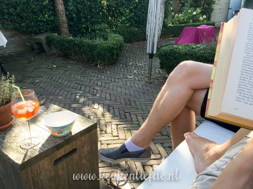 ’s Middags chillen we in de tuin en genieten van het mooie weer.