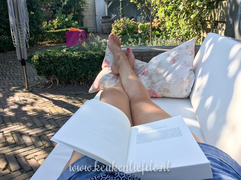 Johan zit weer een aantal dagen in Groningen voor zijn werk, dus El en ik zijn met z’n tweetjes. Als El ’s middags uit school komt, vermaken we ons lekker in de tuin. Nog even genieten van het (waarschijnlijk) laatste zomerweer. Omdat ik door mijn leesvoer heen ben, heb ik mezelf een boek van Johan toegeëigend. Yep, wij zijn dol op Bond.