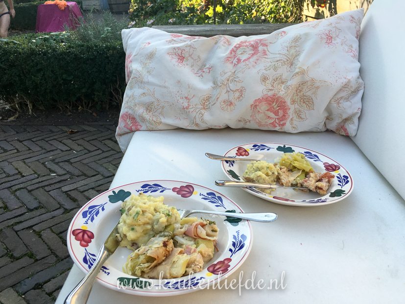 ’s Avonds eten El en ik de preirolletjes met grof gestampte krieltjes erbij. Lekker!
