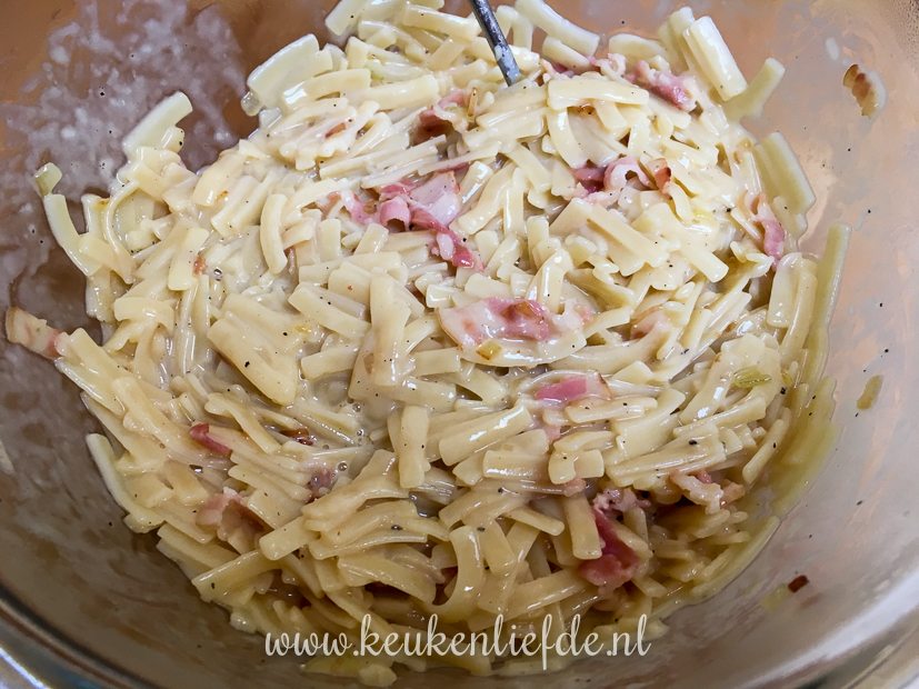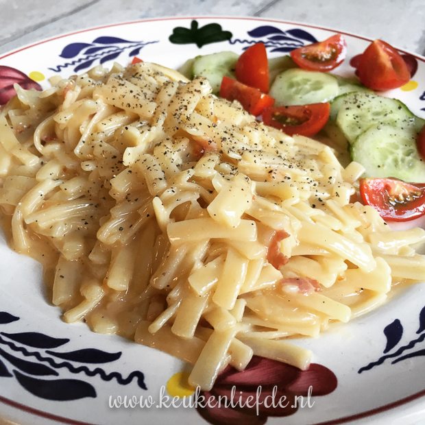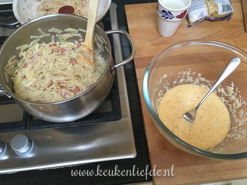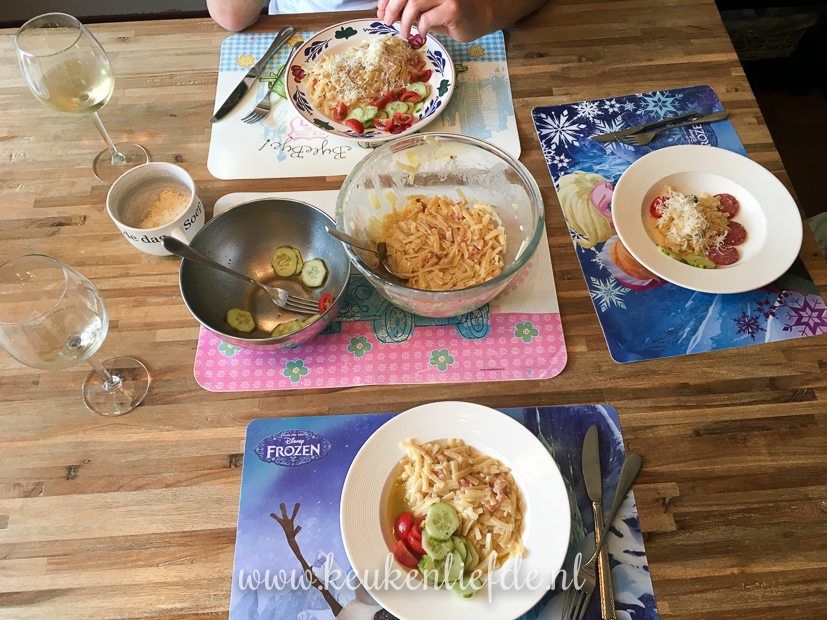 Johan komt weer thuis uit Groningen en heeft zin in pasta. Ik maak pasta carbonara omdat ik daar alles voor in huis heb.