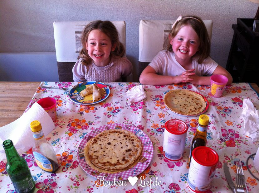 Uit school komt er een vriendinnetje van Ella-Marie spelen, die ook blijft eten. Ik bak pannenkoeken voor de dames. Het is een gezellige bende.