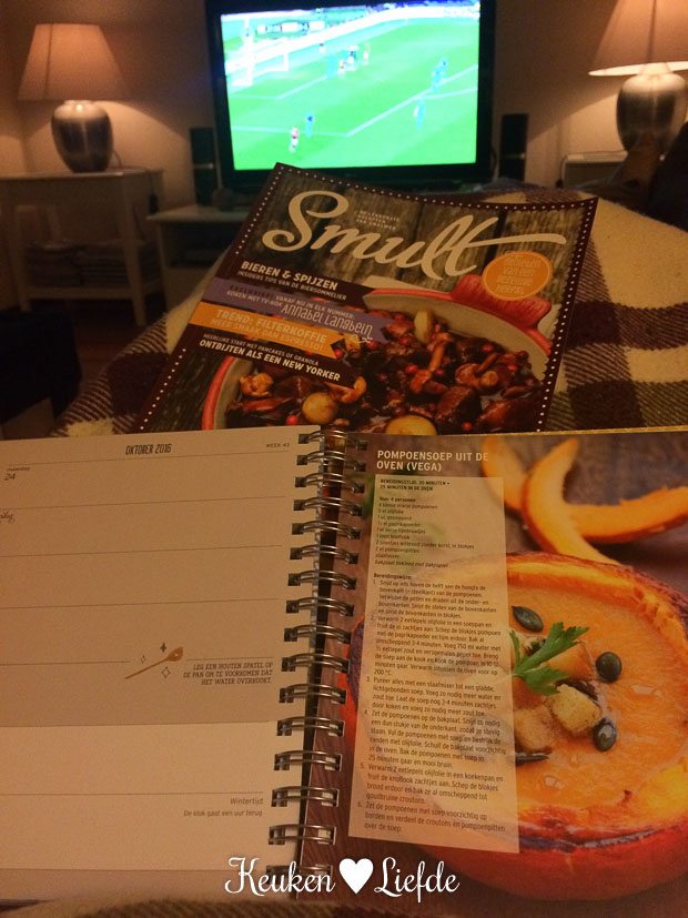 Johan kijkt vanavond voetbal en ik nestel mezelf lekker op de bank met wat leesvoer. Ik kreeg van Smulweb hun nieuwe agenda en een nieuwe Smult thuisgestuurd. Erg leuk!