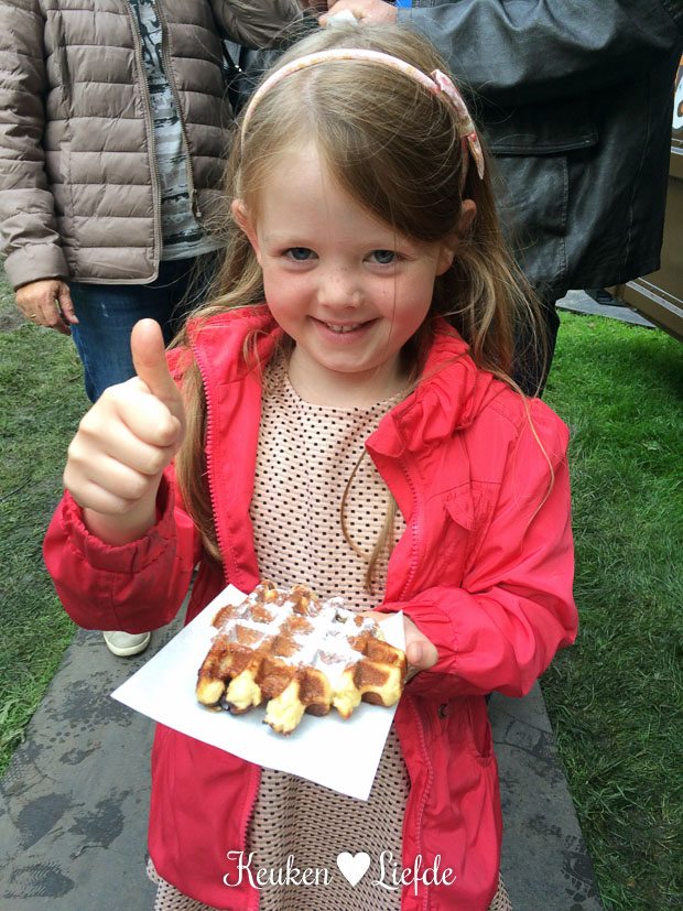 El eet een lekker wafeltje met poedersuiker. Of eigenlijk eet ze een half wafeltje. De andere helft eet ik op.
