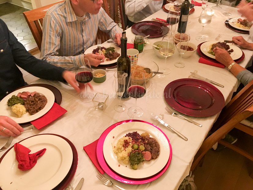 Mijn moeder is maandag jarig en viert haar verjaardag vanavond zoals elk jaar met een etentje. Mijn moeder heeft stoofvlees, rodekool, spruitjes, aardappel-knolselderijpuree, spekjes en appelmoes gemaakt. Mijn tante neemt boerenkoolstamppot en Hema rookworst mee en ik oesters. Wat een combi hè, oesters en stamppot. Haha, maar wel lekker!